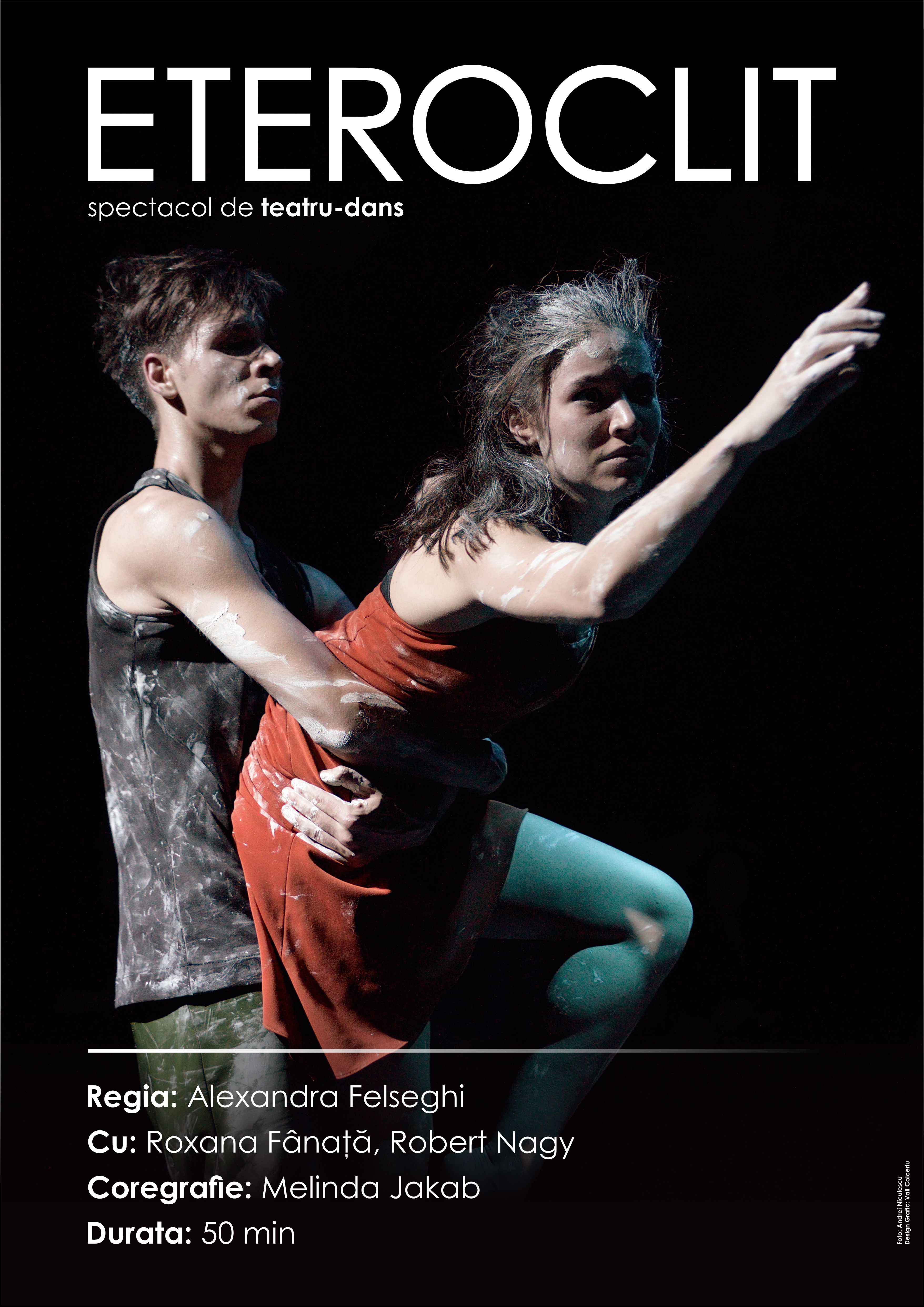 It's a simple story, like all complicated things: it can be my story, your story, theirs or the other's, of the Suitcase-Woman and of the Umbrella-Man. Maybe we have seen each other before, maybe we have spent some time together, thus becoming more estranged than before. Strangers and acquaintances at the same time. I can be hurt by you. I can be nourished by you. It's a simple story, like the paradox of loneliness in a happy ending. "Heteroclite" is a production that combines the playfulness of the Theatre of the Absurd with that of contemporary dance.