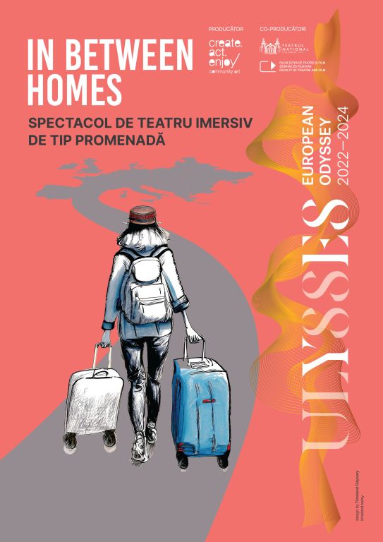 IN BETWEEN HOMES propune o experiență teatrală unică pentru peisajul clujean - nouă spații diferite pe care fiecare spectator le va parcurge pentru a urmări și a medita asupra migrației românilor și a efectelor pe care aceasta le are asupra familiilor. Spectacolul urmărește felul în care familiile transnaționale identifică noi modele de co-prezență și de păstrare a spațiului de siguranță, suport și intimitate, în ciuda faptului că trăiesc în mai multe lumi.