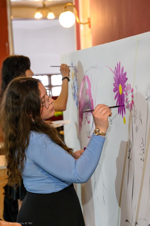 14:00 - 16:00, Rotondă MĂȘTI ȘI FLORI Atelier de pictură colaborativă, cu actrița Sânziana Tarța 12+