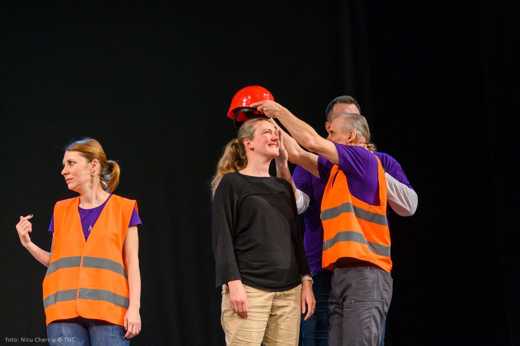 12:15 - 17:15, Scena mare VIZITE ÎN CULISE, ghidate de actori ai Teatrului Național Cluj-Napoca Vizitele includ și instalația artistică participativă ECOURI DIN CULISE Concept: Mădălina Mânzat Execuție producție, realizare artistică: Digital Interactive Arts Master, anul I, Facultatea de Teatru și Film, UBB și Mădălina Mânzat AG Pe lângă spectacolul care este prezentat publicului, până la ridicarea cortinei, după ce s-a așezat publicul plătitor de bilete, se întâmplă spectacolul de culise. Dacă am avea ocazia să îi privim cu atenție pe toți cei care pregătesc spațiul pentru povestea ce urmează să fie reprezentată cu delicatețe, atenție și implicare din partea actorilor, în prima partea a zilei, tehnicienii de scenă au aceleași priviri atente, pline de grijă și implicare. Ce-i drept, aceste priviri pot fi surprinse când nu se știu priviți, și celor mai mulți chiar preferă să nu fie văzuți, de acolo și dragul de meseria pe care o fac. ECOURI ÎN CULISE propune un moment de omagiere a lumii anonime a teatrului. Într-o lume în care tindem să ne lăsăm dominați de obiecte, o lume în care lucrurile, hainele, melodiile pe care le ascultăm, au fiecare povestea lor și ne creăm câte un atașament față de ele, în teatru, ele capătă înt-o mică măsură, altă conotație. Ce ar fi să vedem ce înseamnă devotamentul față de obiecte în lumea teatrului? Cele mai potrivite persoane care ne pot vorbi despre viața acestor obiecte sunt colegii de la echipa tehnică.