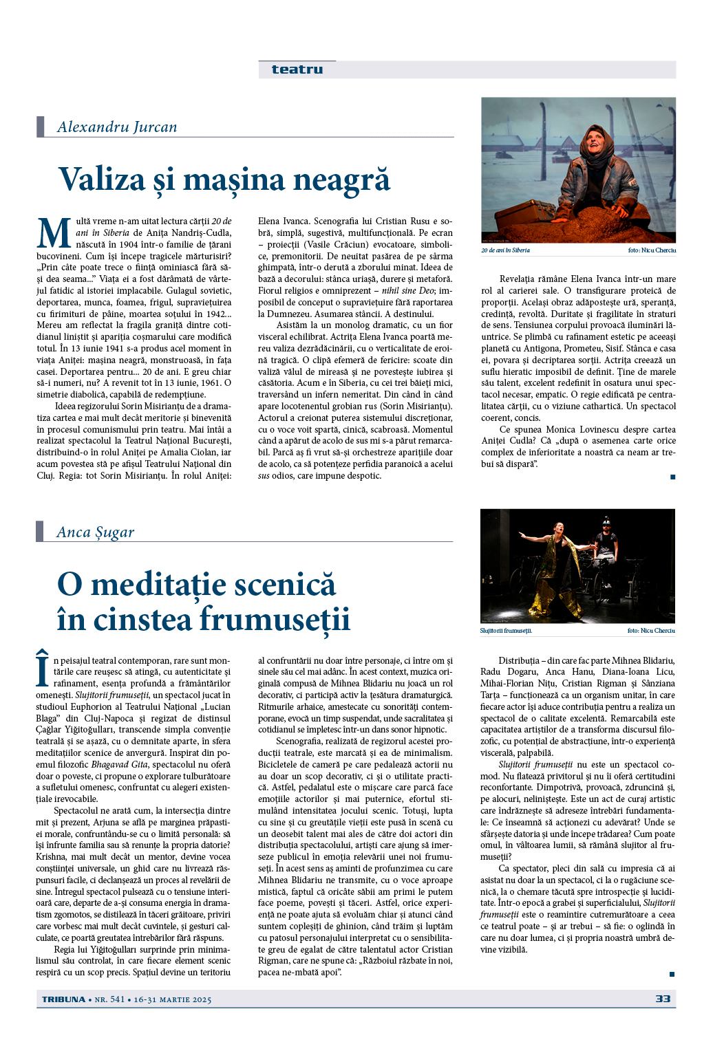 Anca Șugar, O meditație scenică în cinstea frumuseții, Tribuna,