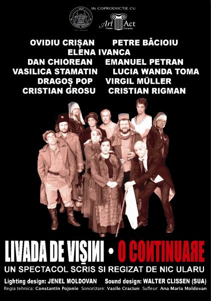 Piesa, avînd titlul original The Cherry Orchard Sequel, a fost prezentată în premieră mondială la celebrul teatru LaMaMa ETC. din New-York, pe data de 24 februarie 2008, în regia şi scenografia autorului, Nic Ularu. Montarea s-a bucurat de o critică foarte favorabilă în revistele Variety şi New-York Times, fiind numită de New-York Times „o surpriză strălucită ajutată de performanţe excelente la toate nivelurile“, şi fiind listată de criticii de la acest ziar printre cele mai recomandate şapte spectacole (din 76) din New-York, în luna martie 2008.