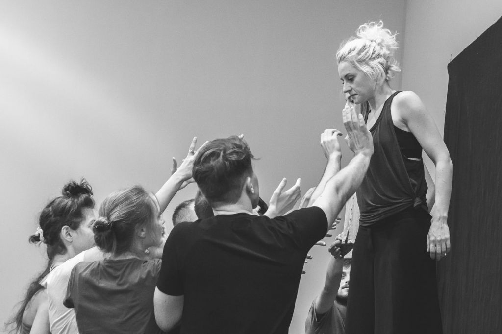 Când era vorba de cor, abordarea lui Io - pentru că a recunoscut că personajul acesta colectiv a fascinat-o - a fost modul în care reușești să fii la fel ca celălalt, dar, în același timp, să-ți păstrezi individualitatea. Practic, majoritatea exercițiilor porneau de la a fi unul cu celălalt. De exemplu, mersul. Încercam să ne găsim același ritm, aceeași respirație, să ne calibrăm energia și o dată ce le găseam, începeam să adăugăm detaliile noastre. Și-atunci baza rămâne aceeași, dar nu ne mai pierdem unul în celălalt. Reușim să ne diferențiem prin detalii specifice.