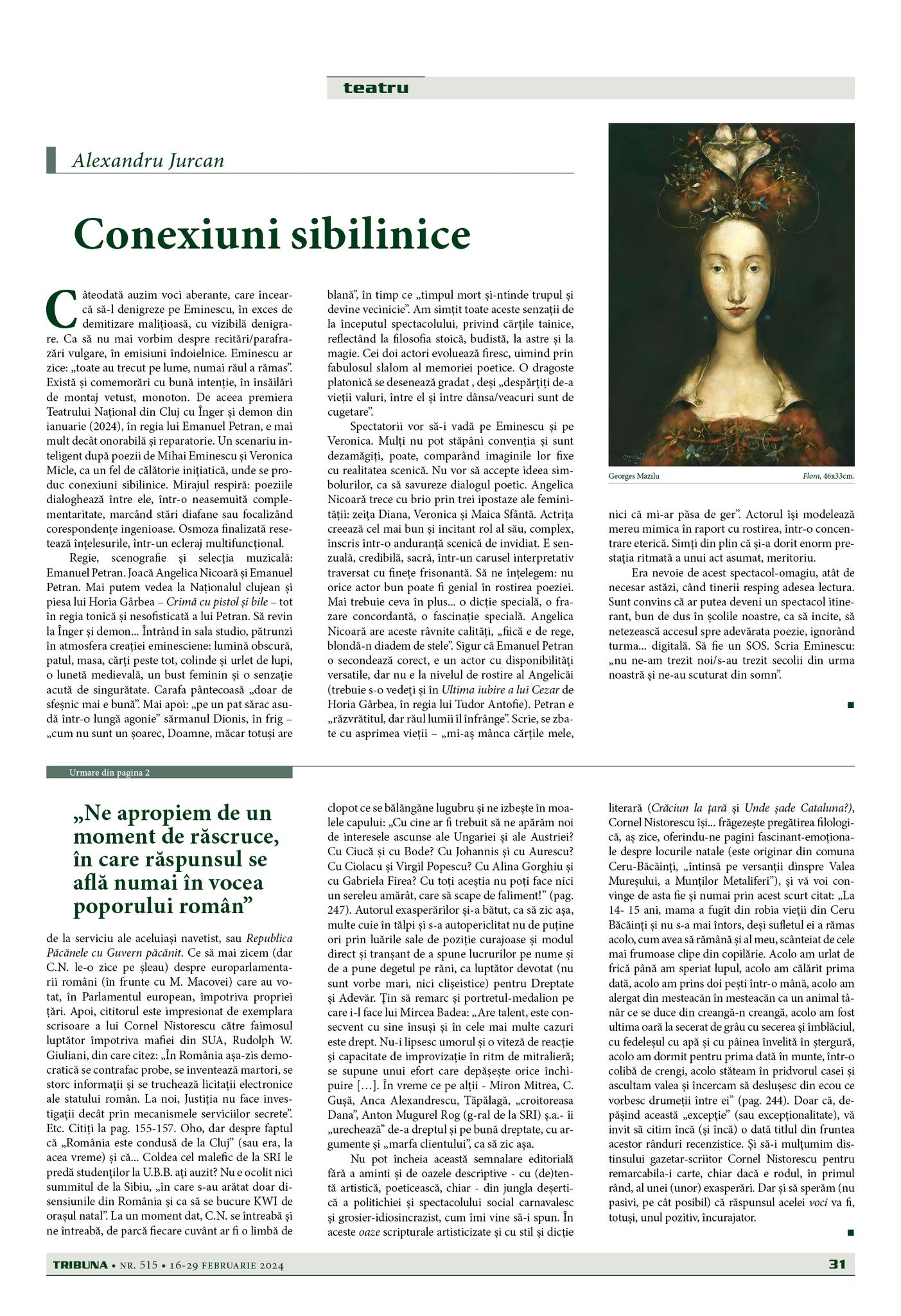 Adrian Țion, Încă un omagiu adus lui Mihai Eminescu: Înger și Demon - o experiență teatrală reușită,